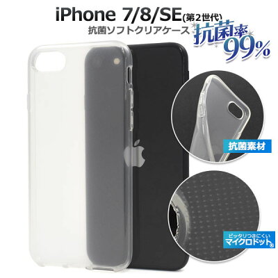 iPhone 7/8/SE(第2世代)用 抗菌マイクロドットソフトクリアケース 抗菌性試験実施済み!抗菌率99%! 大腸菌や黄色ブドウ球菌等の増殖を抑える効果がある加工を施しています。