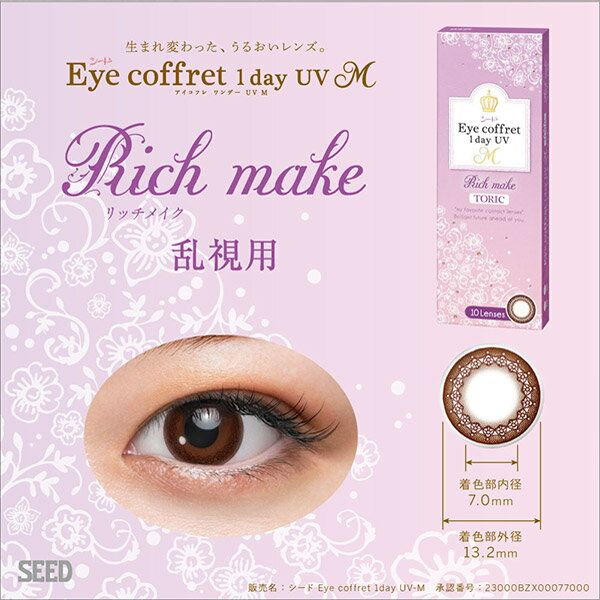 【ゆうパケット発送】【乱視用】アイコフレワンデーUV M トーリック 1箱(1箱10枚入り) シード 乱視用 カラコン コフレ 北川景子 1日使い捨て